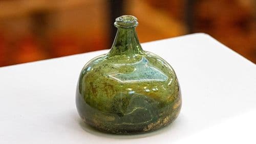 Deze maand de vondst van Rozemarijn. Ze is adviseur archeologie bij provincie Gelderland en ziet veel archeologische onderzoeken voorbij komen. Zij laat ons een wijnfles uit het jaar 1700 zien.